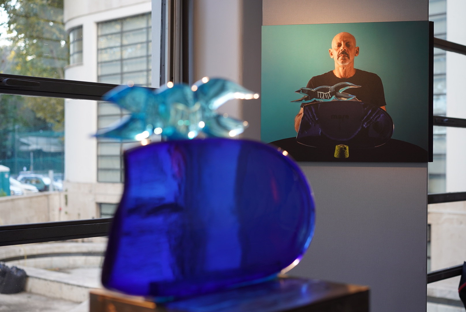Le creazioni artistiche di Ria Lussi e i piatti di Gianfranco Pascucci indagano le trasparenze e le sensazioni cromatiche degli ambienti marini, fondendosi e intrecciandosi in un rimando di colori ed evanescenze. Il blu è predominante nella creazione della Lussi «Aria di Mare», una composizione di quattro sculture in vetro soffiato di Murano («Growing up», «Stella», «Coquillage» e «Nuage»). Lo stesso colore torna protagonista anche nei piatti di Gianfranco Pascucci, chef del ristorante al Porticciolo di Fiumicino (1 stella Michelin) in un richiamo cromatico evidente, ad esempio, nel piatto con gobbetti marinati su un brodo con vongole e uova di gobbetto. Il testimone «silenzioso» di questo dialogo è il fotografo Lido Vannucchi che attraverso i suoi scatti ha fuso, in un unico linguaggio, le creazioni dello chef e dell’artista.