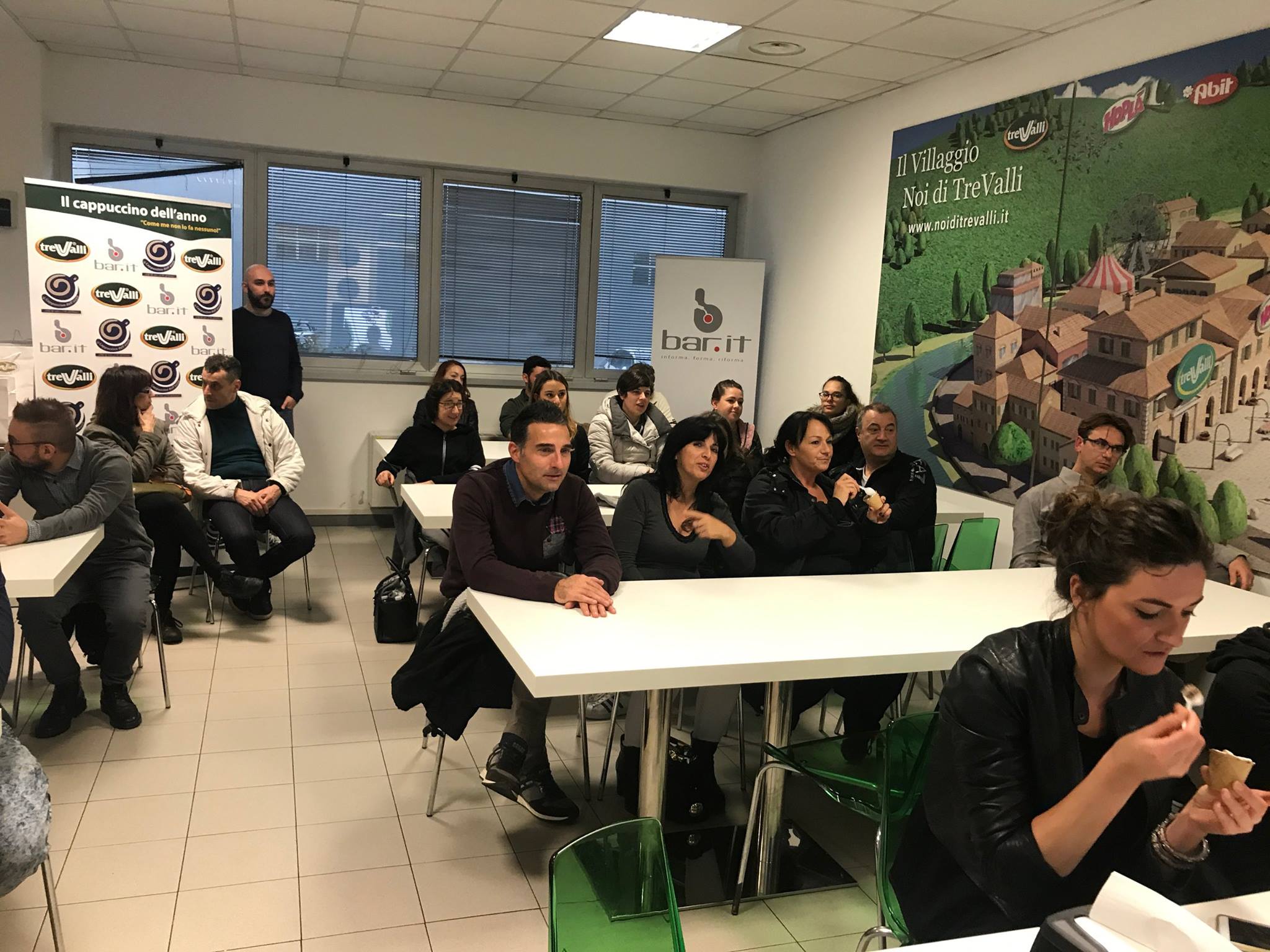 Nella parte conclusiva del pomeriggio, Laura Tonti (docemnte di bar.it) ha tenuto una piccola lezione teorica sulle tecniche di montatura del latte, prima che a tutti i partecipanti venisse consegnato, dal Presidente Trevalli Paolo Fabiani, il diploma di partecipazione personalizzato ed i gadget messi a disposizione dall’azienda. Bar.it e TreValli proseguono quindi nel percorso di collaborazione iniziato qualche mese fa, e che sta portando alla realizzazione di eventi ed iniziative molto importanti.