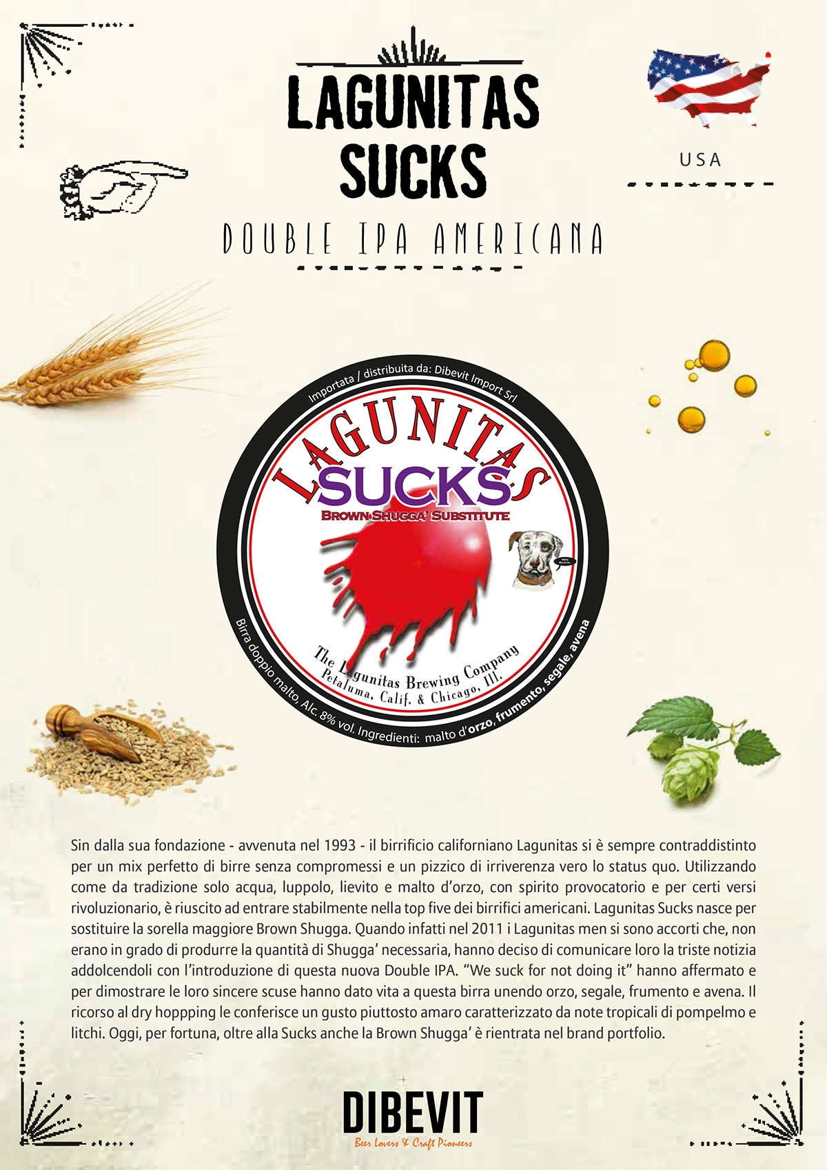 «Lagunitas, con il suo carattere irriverente e anticonformista, è riuscito a entrare stabilmente nella top five dei birrifici americani. E la Sucks, così decisa e provocatoria, ne rispecchia tanto nel gusto quanto nel nome, l’essenza e la storia. Per questo – dichiara Davide Daturi Amministratore Delegato di Dibevit Import – siamo felici di importarla in Italia in versione stagionale. Perfetta per dare un’ondata di grinta alle lunghe serate invernali, sempre al motto di “Beer Speaks, People Mumble”».