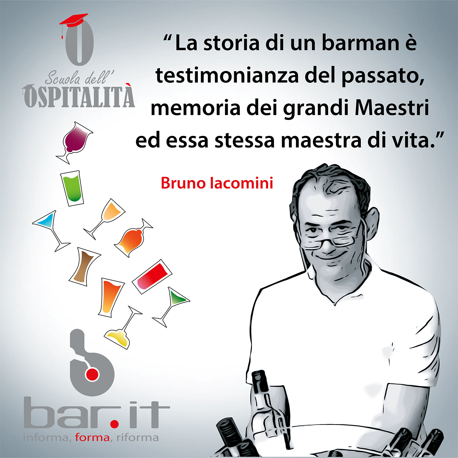 Per ogni articolo, appunto, troverete foto del barman aforisma e una sua ricetta “cavallo di battaglia”. Alla fine di questo percorso, raccoglieremo tutte queste esperienze in un volume: “Storie al Bar” e-book e cartaceo.