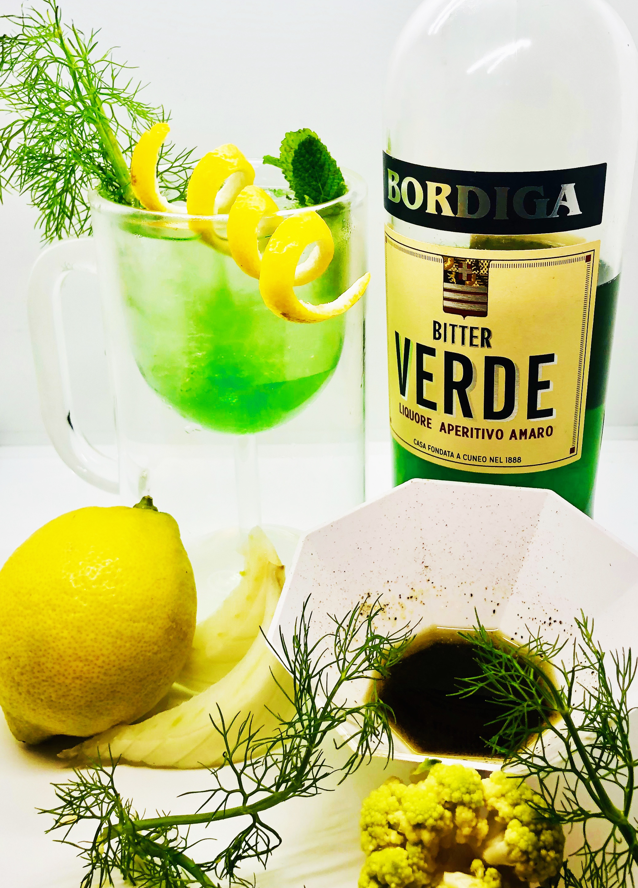 L’ingrediente principe è il bitter verde Bordiga, che con la sua etichetta ispirata all’originale degli anni venti, riflette tutta l’atmosfera e la spensieratezza dell’epoca, lasciando un sapore inconfondibile di agrumi gradevolmente amaro. Un bitter semplicemente fantastico. delicato infuso di erbe alpine, ha dei sapori di menta ed eucalipto, con un accenno di finocchio che aggiunge una gradevole dolcezza,