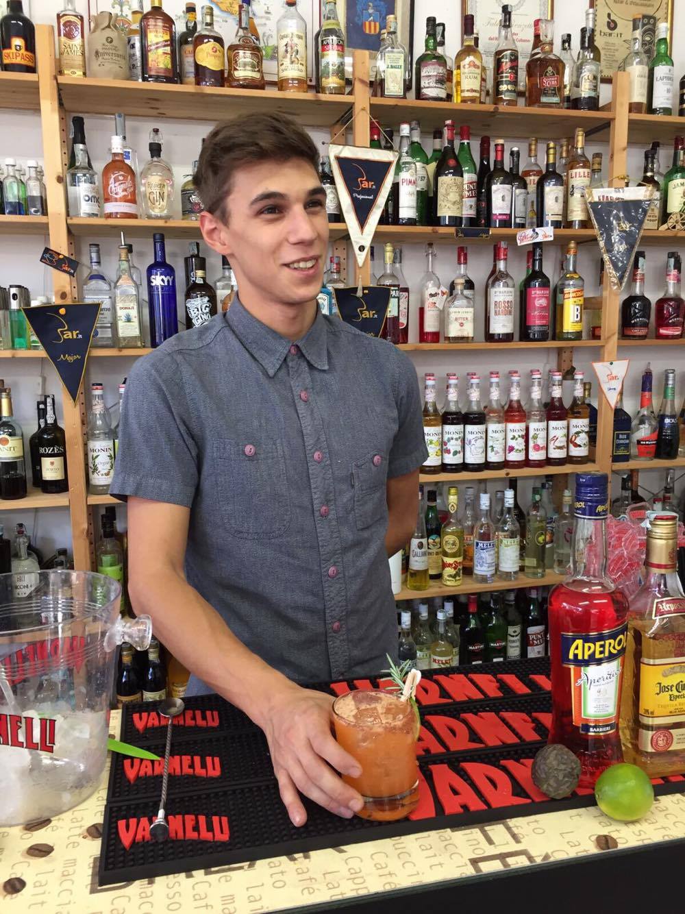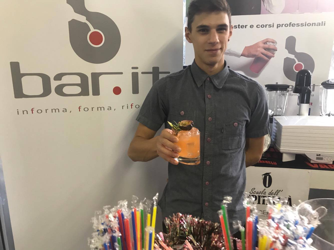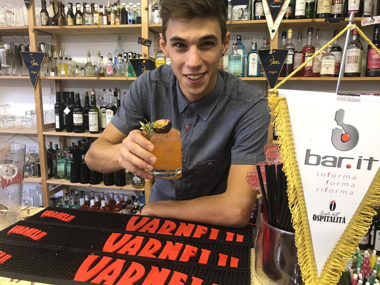 Con le prime esperienze lavorative si appassiona al mondo dei cocktail. Ha poi frequentato il corso di Primo livello presso la Scuola dell’Ospitalità di Bar.it per approfondire la materia. Tutt’ora Barman presso lo storico locale Pino’s Bar di San Severino Marche.