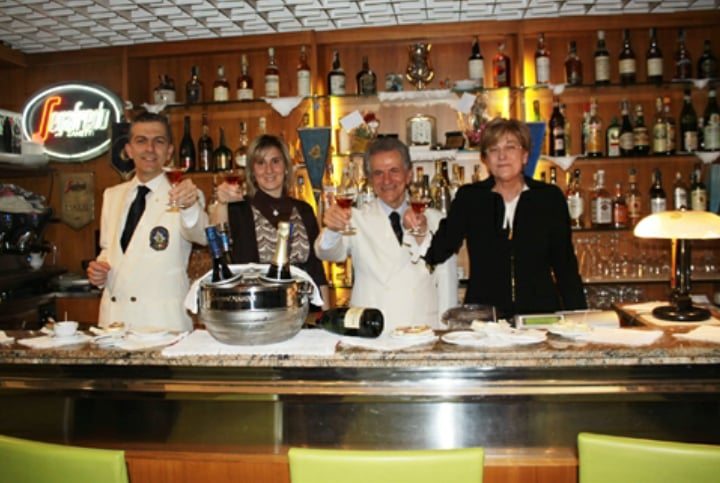 Ho cercato nel modo miglior possibile di insegnare a mio figlio Alessandro cosa vuol dire amare questo lavoro, un lavoro che comporta sacrifici e rinunce ma pieno di soddisfazioni. Aver “creato” in mio figlio la vera immagine di barman mi gratifica in pieno perché in lui ho visto la giusta continuità della mia azienda. Lei mi chiede di trovare un difetto in mio figlio, forse il carattere che è un po’ più “scherzoso” del mio con la clientela, ma sempre nei giusti modi di cortesia e gentilezza. Il pregio è lavorare insieme a me, a mia moglie Cesidia ed a sua moglie Dayana, credo che in pochi riescano a farlo in perfetta armonia svolgendo ognuno le proprie mansioni.