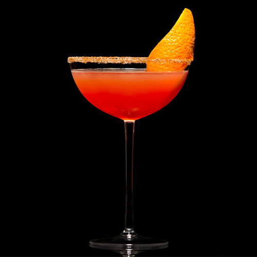 Bordare la coppetta Martini con una crusta di cannella e zucchero. Guarnire con una buccia d’arancio.