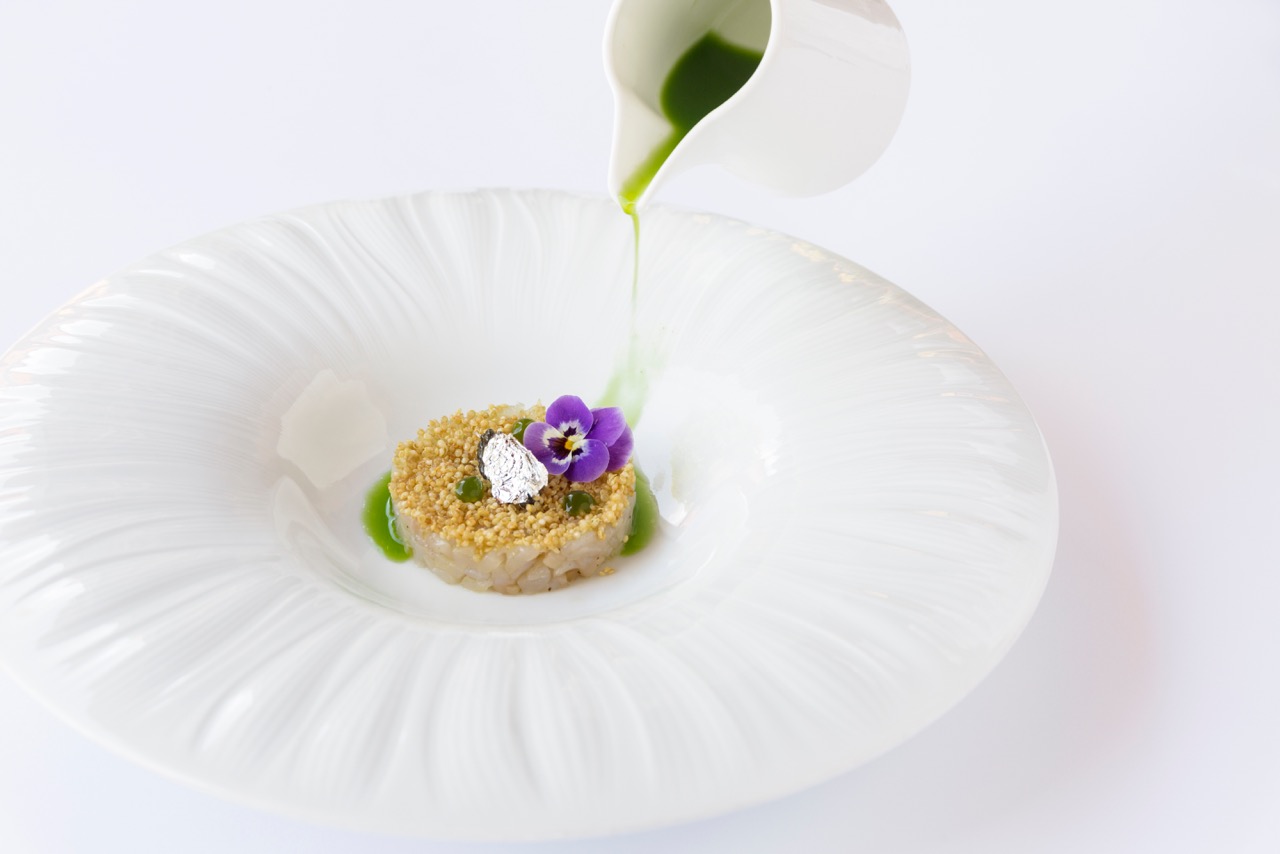 La brigata, fra cuochi, sous chef, pastry chef, si compone di dieci elementi, tutti under 35. Già da qui s’intuisce lo spirito innovativo, fresco e giovane che guida le tecniche in cucina e le scelte che contraddistinguono il menu proposto dallo chef sardo, scelto dalle famiglie Cristoforetti e Delibori per interpretare al meglio l’anima e l’essenza del ristorante incastonato all’interno dell’antica villa veneta, risalente al XVIII secolo, immersa nella prestigiosa tenuta di cento ettari di vigneti e oliveti.