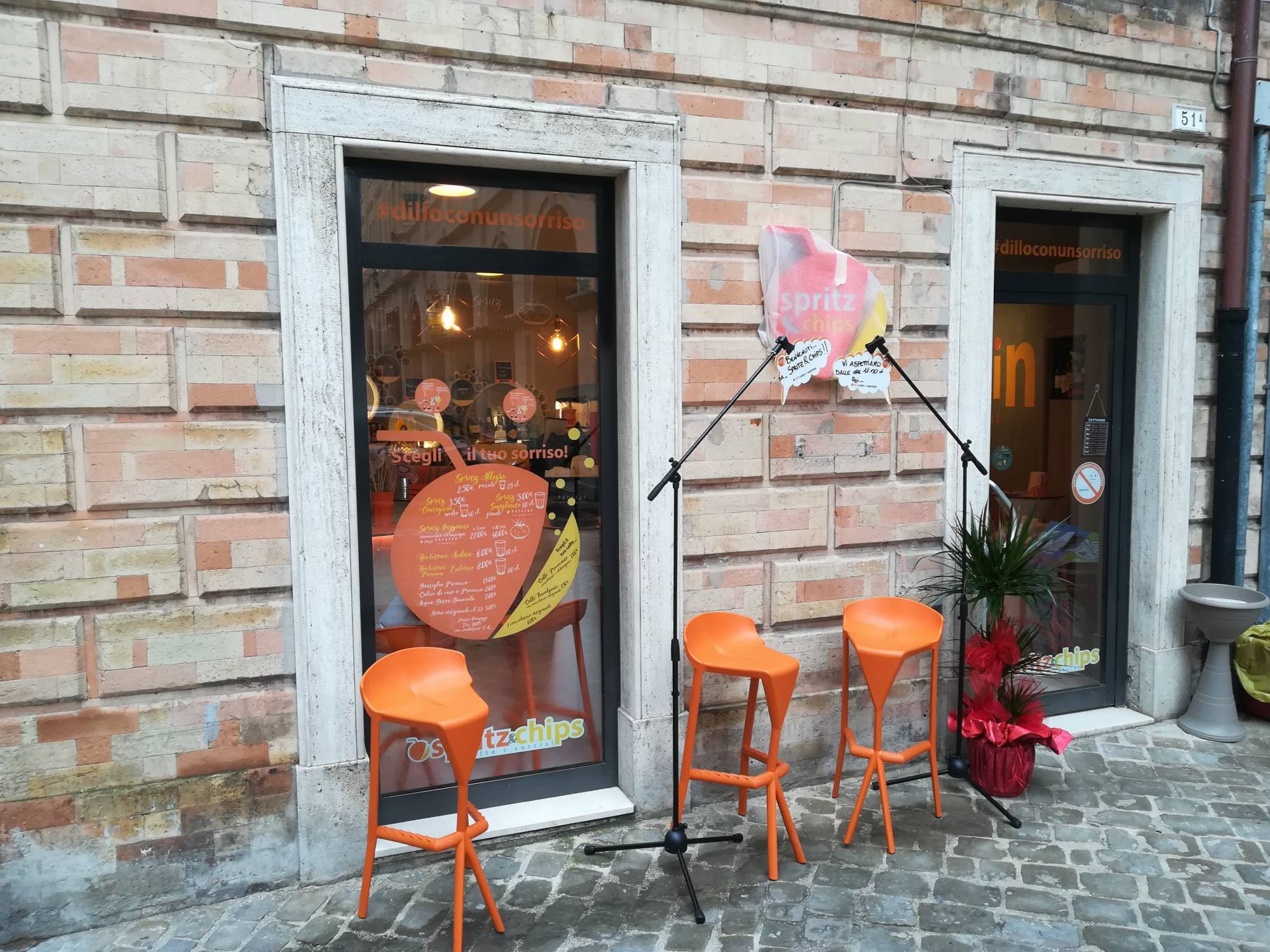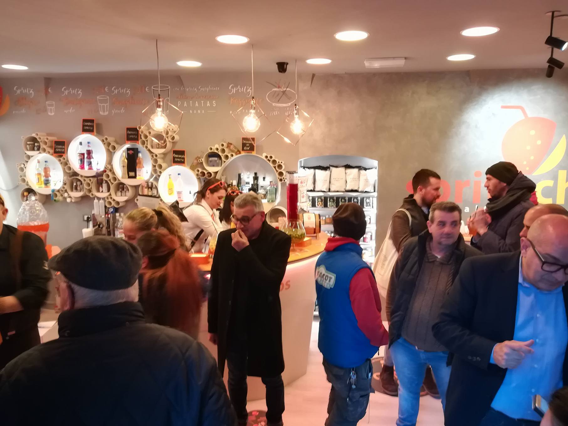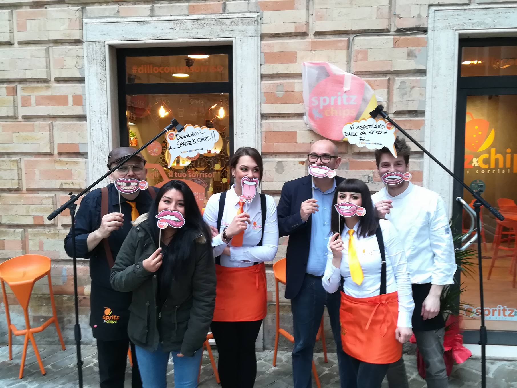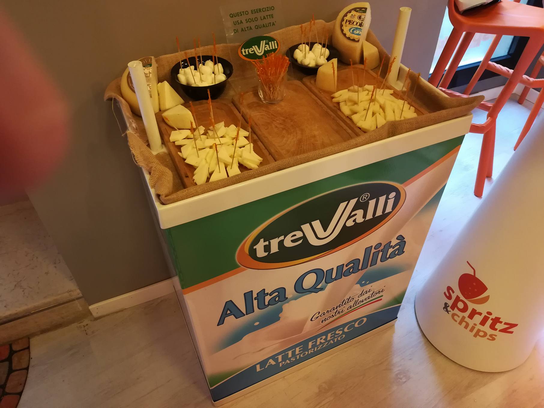 Un ringraziamento doveroso ad alcune aziende, che faranno poi parte del percorso futuro di Spritz&Chips: TreValli Cooperlat, Fabbri 1905, Patatas Nana, Shotin, Montelvini, Paoletti Bibite, Montecchiesi Rosa, Tecnobar (l’architetto Giulio Perfetti ha curato l’arredo del locale), Pierre-Dolce al cuore, Olive Le mie Olive. Un grazie anche alle due “padrone di casa”, che con la loro personalità serviranno i clienti: Giorgia Calamante e Rachele Valeri.