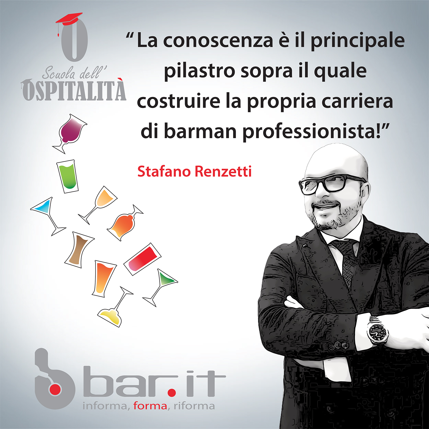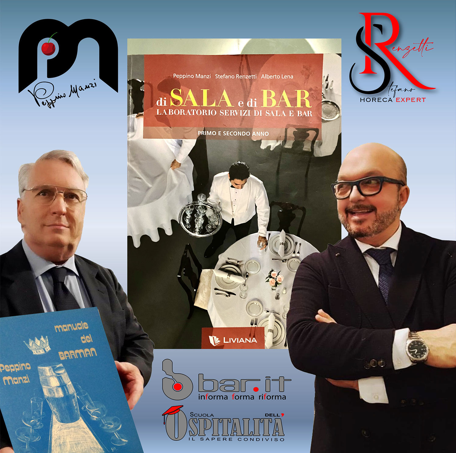 In tutto questo percorso, Stefano Renzetti ha avuto figure di riferimento e veri e propri maestri di vita e di professione. A partire da Peppino Manzi e dal suo Manuale del Barman, sul quale Stefano ha studiato per anni e con il quale si è incontrato anni dopo, collaborando anche alla stesura di testi per le Scuole alberghiere.